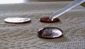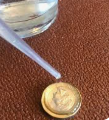 3. Slowly add water droplets to the center of the coin, one at a time.